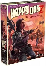 Happy Dayz – Woodstock Fever est un jeu de plis survitaminé dans lequel 2 à 5 joueurs incarnent des communautés de survivants coincées dans une petite ville américaine envahie de zombies. Chaque manche, vous jouez vos cartes d’un côté ou de l’autre du plateau : côté « + », la carte la plus forte d’une faction remporte le pli, côté « – », c’est la plus faible qui l’emporte. Ce simple choix change tout, car gagner un pli permet d’activer les pouvoirs uniques des différentes factions humaines (hippies, militaires, motards, chiens, etc.) mais vous fait aussi récupérer les zombies présents, qui feront saigner votre compteur de survivants en fin de manche.